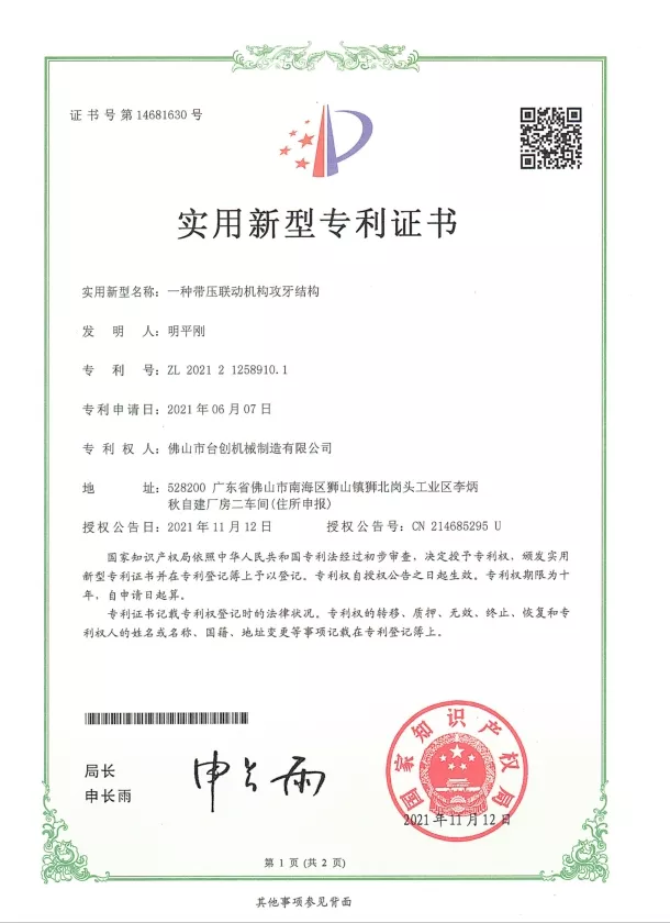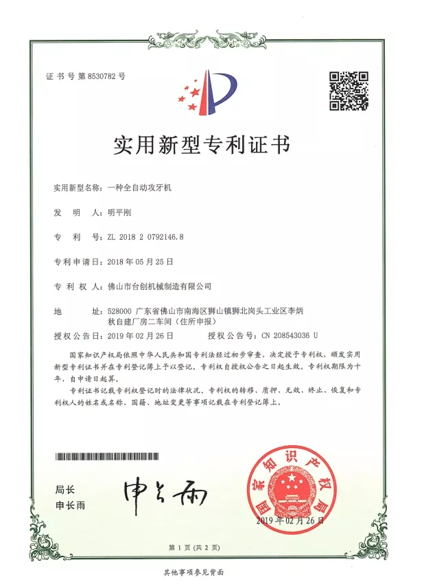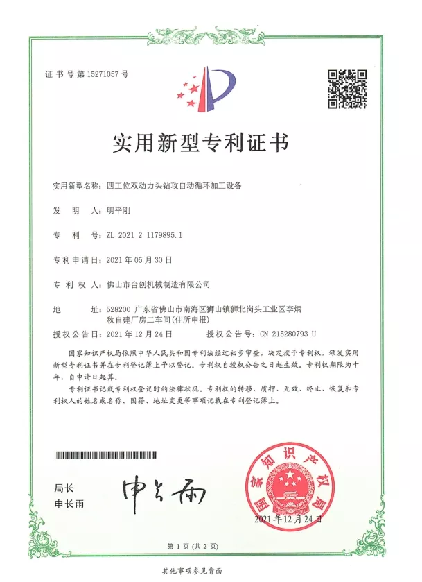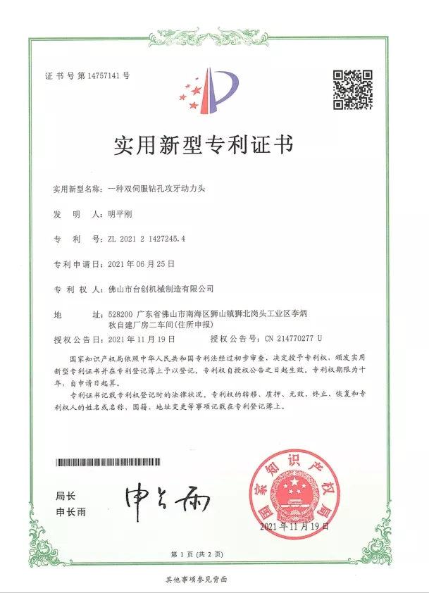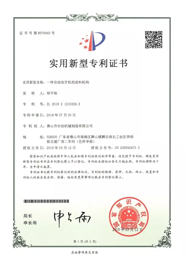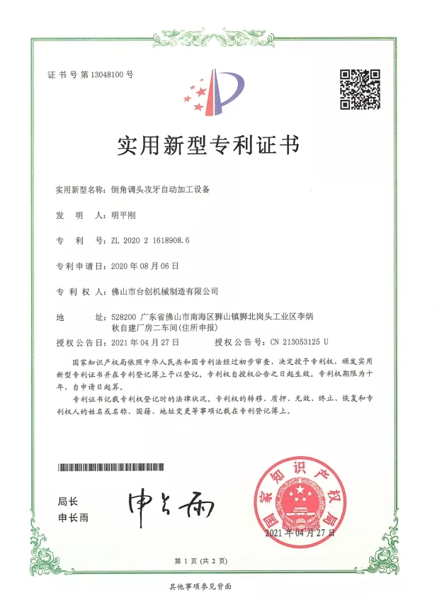 Патенты и инновации: Мы обладаем многочисленными патентами на технологии наших гайкорезных станков, охватывающие механическую конструкцию, системы автоматизации и решения по обеспечению безопасности. Постоянные исследования и разработки гарантируют, что наши машины обеспечивают высокую точность, стабильность и эффективность. Инновации применяются в системах ЧПУ, сервоприводах, системах контроля крутящего момента и автоматической обработке материалов для удовлетворения растущих потребностей современного производства.